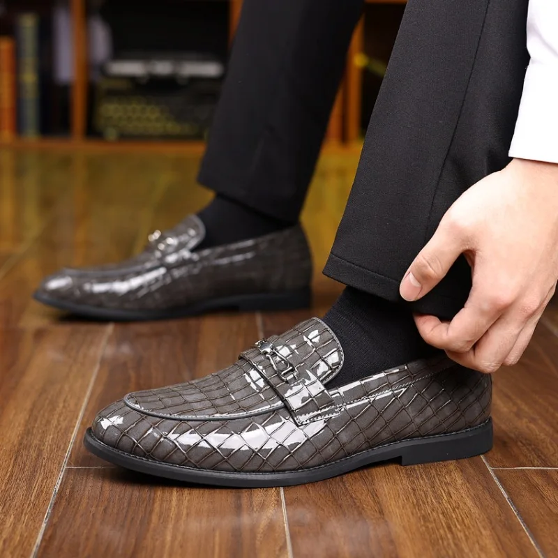 Luxury Brand Designer New Men White Grey Blue Metal Button Flats Shoes Moccasins Wedding Prom Homecoming Loafers Zapatos Hombre