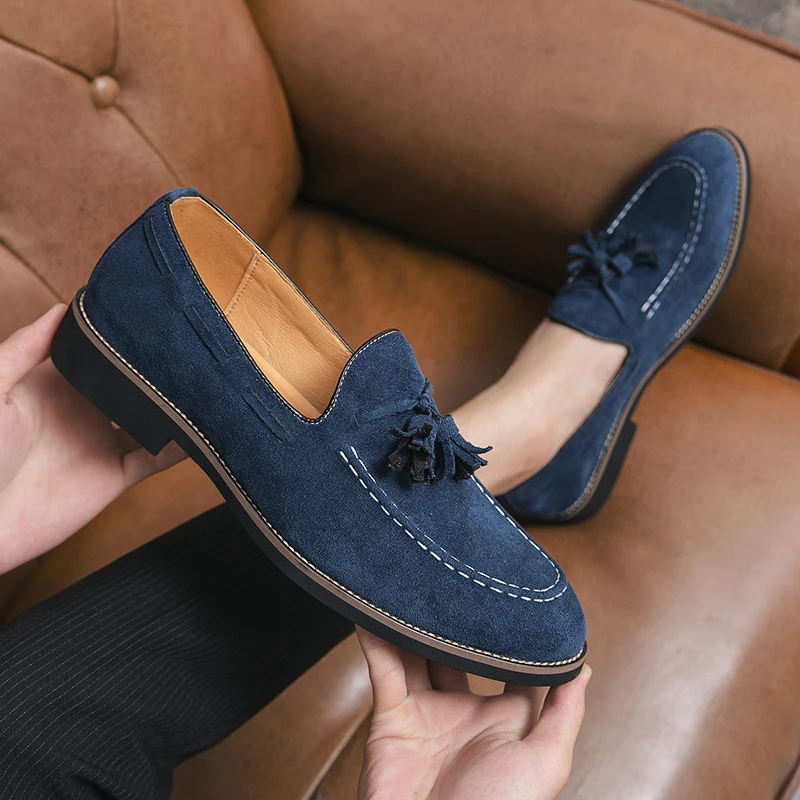 Trend Designer Britain Retro Pointed Tassels Suede Wedding Leather Oxford Shoes Men Casual Loafers Formal Dress Zapatos Hombre